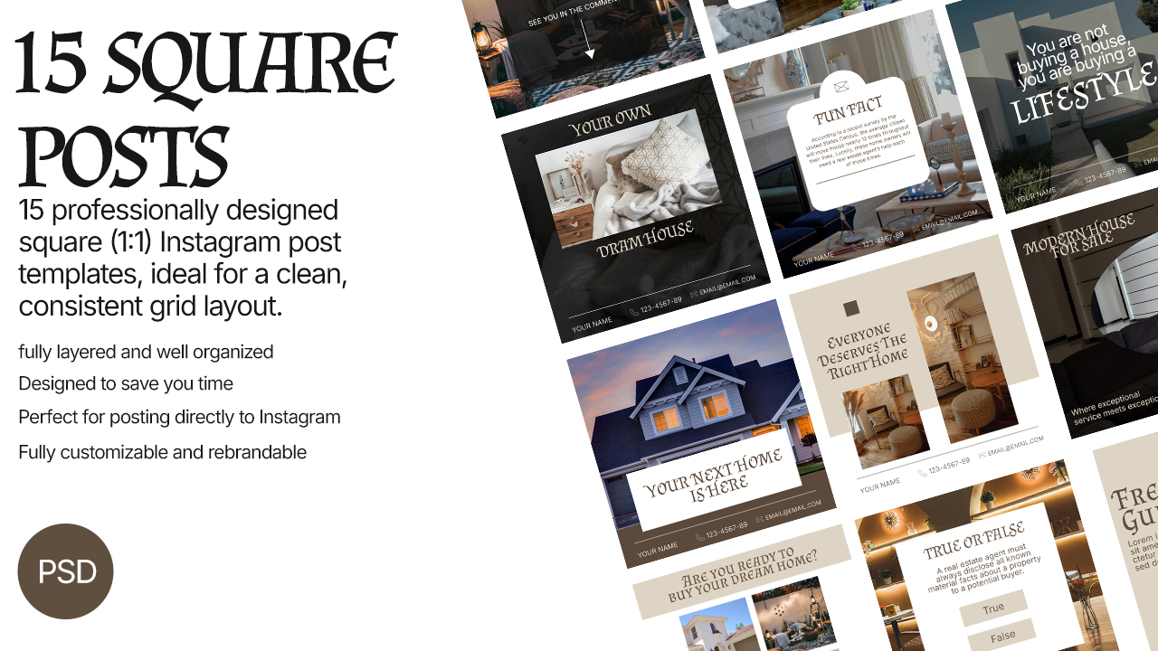 15 posts in 1:1 format (perfect for a clean, balanced grid)