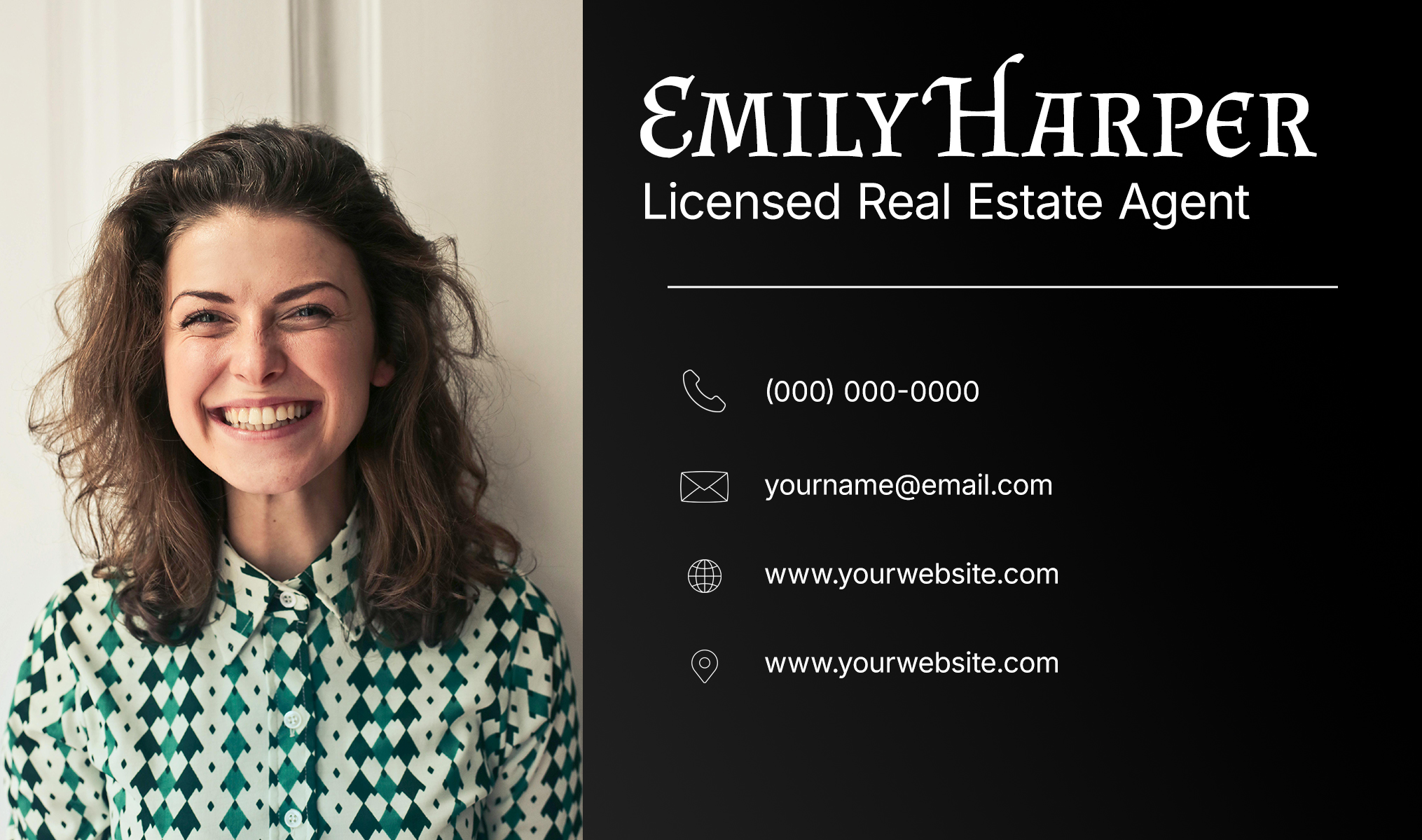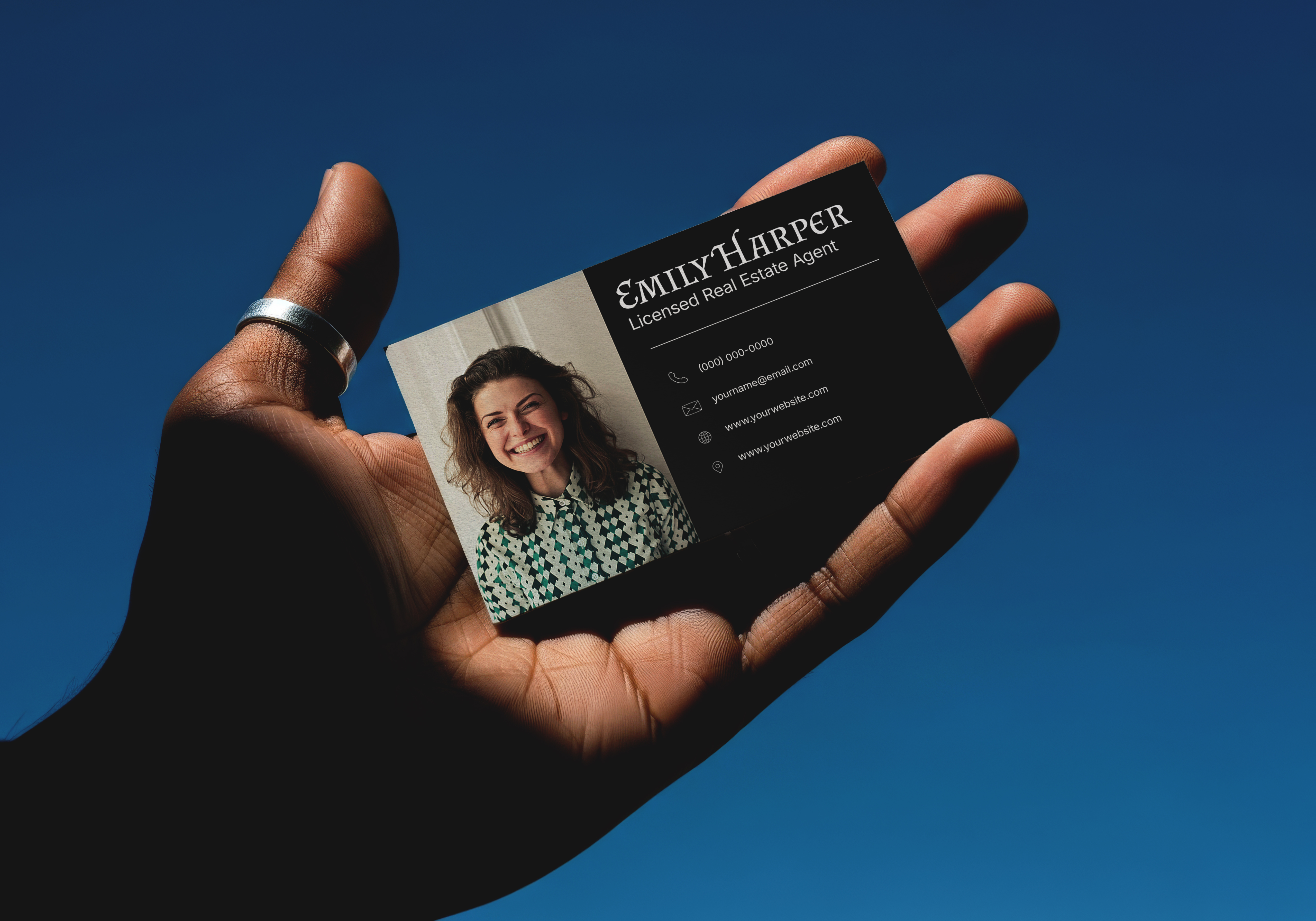 A sleek, professional business card designed to help real estate agents stand out and promote themselves effectively. Perfect for both printed cards and digital sharing.